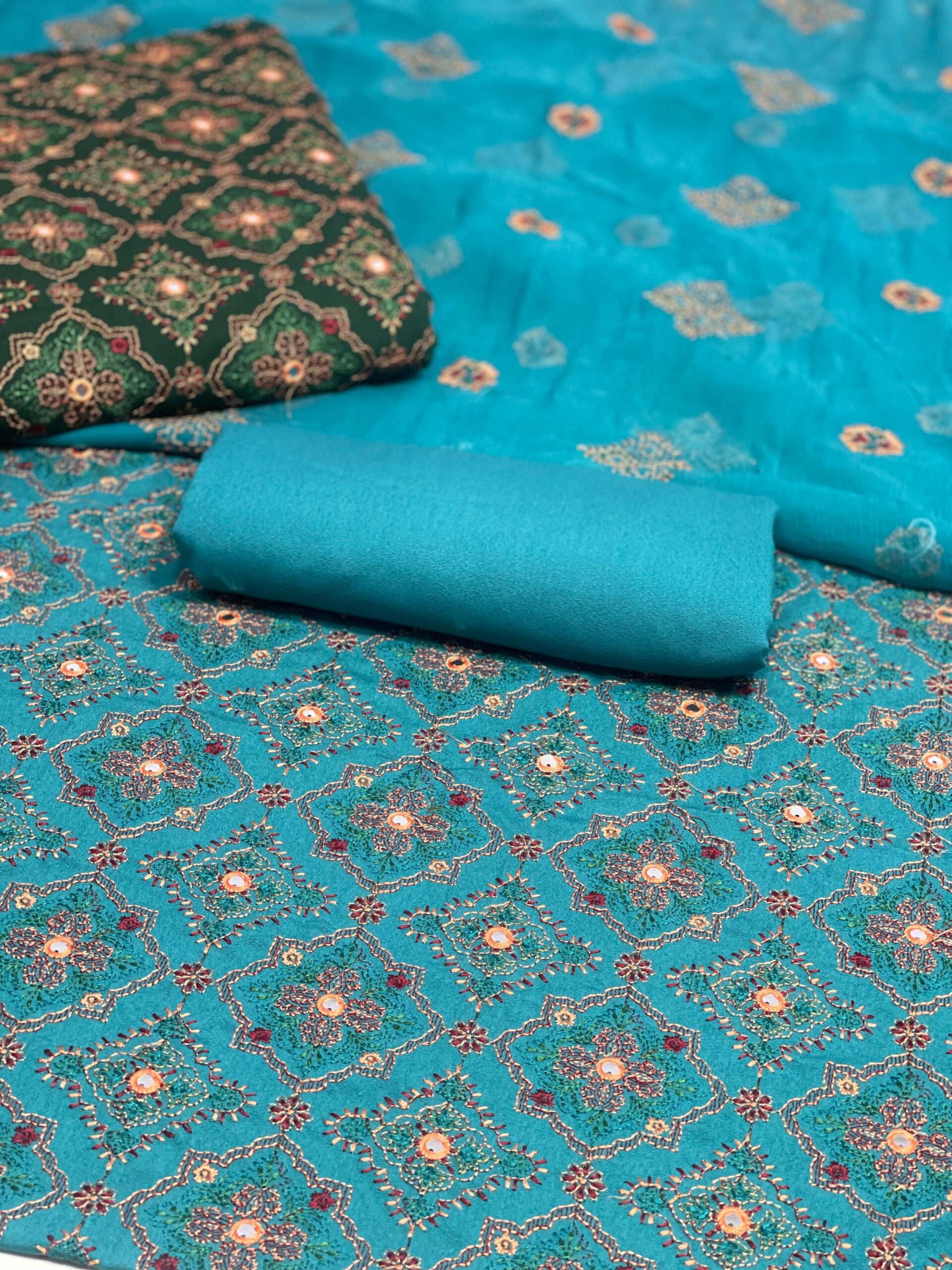 ● Full embrioded shirt 2.75 Yard ● Pakistani Pure Crinkle chiffon Duppata 2.70 Yard